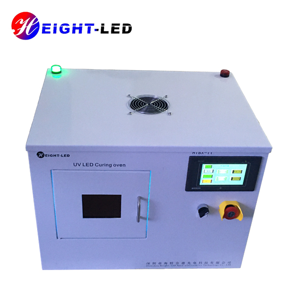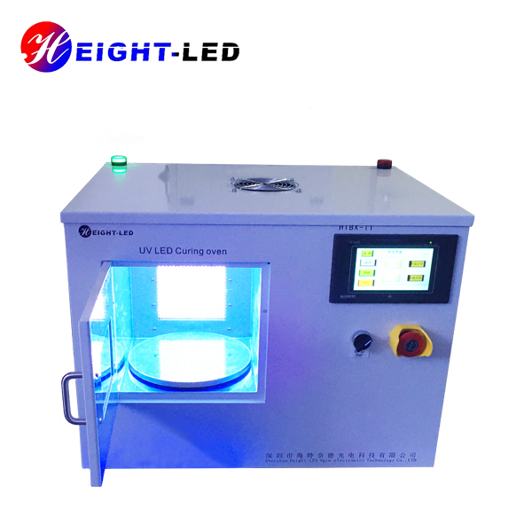 一款针对UV胶粘剂固化设计的高性能UVLED光固化系统,该系统采用箱式结构内部放置UVLED照射头及控制板,外加可透视窗口。共有两个出光面,顶部出光面积200X200mm,侧面出光面积为150X120mm,UV光谱波长为365nm,采用强制水冷散热,支持外部信号输入及触发,箱门处装有传感器,关门灯亮关门即灭,底部装有转盘,可根据需要调整转速,保证受光均匀度及异型件侧面点胶位置的UV固化能够充分进行。