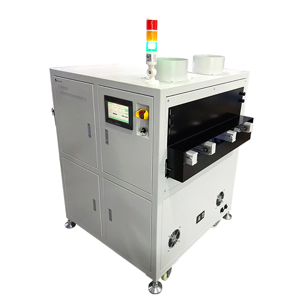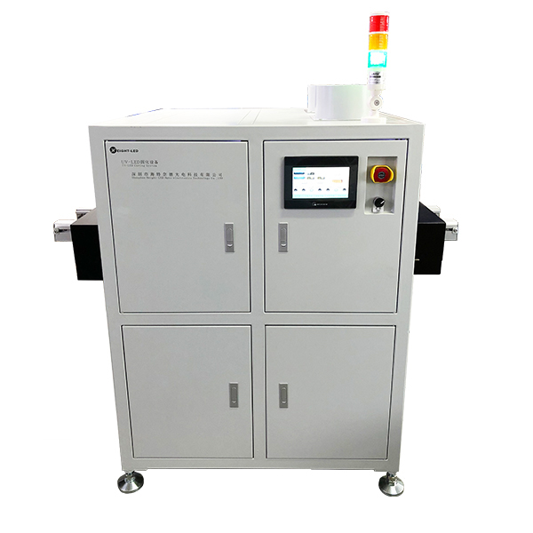这是一款针对于PCB三防胶uv固化而设计的高性能链条式UVLED固化机。该UV设备主要包含控制系统、UVLED照射头及双轨道链条式输送带,采用上下两个260X160mm的面光源照射,可手动调节轨道宽度,双通道PLC控制,整机及光源面积均可定制。