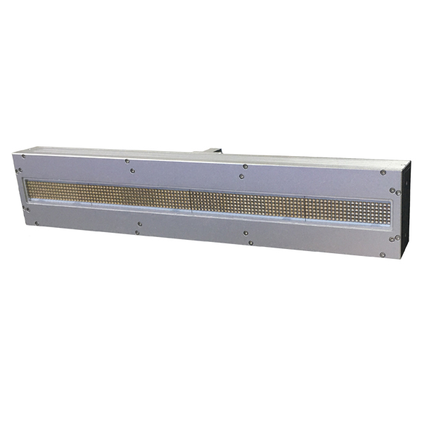 此UVLED固化机内置2个UVLED面光源 出光面积:500x30mm 波长:365nm 光功率密度:7500mW/cm²(光源参数可定制)