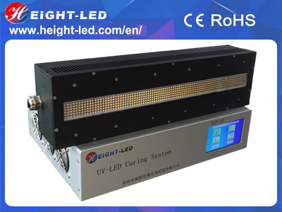 This is a high-performance UVLED curing system, the system includes the controller, UVLED irradiation head and cable. UVLED head with imported high-intensity UV LED integrated UV spectral wavelength of 365nm, 385nm, 395nm, 405nm, the use of forced air cooling, the effective curing area of 400X30mm, support for external signal input and trigger, can be equipped with semi-automatic or fully automated production line .