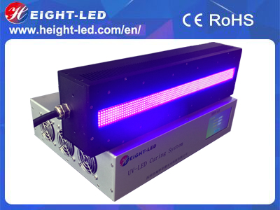 The UV-LED curing system adopts the LED lighting method, and the LED with different wavelength of 365nm, 385nm, 395nm and 405nm wavelength can be used to cure different materials,such as UV glue, UV ink, UV varnish, UV paint.