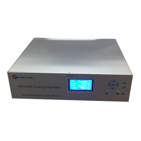 This is a high-performance UVLED curing system. The system mainly includes a controller and a UVLED irradiation head. The UV spectrum wavelength is 385nm. It uses forced air cooling to dissipate heat. The effective curing area is 100X20mm.