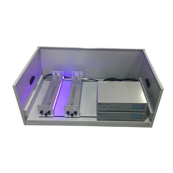 This is a high-performance UVLED linear light source curing system. The system mainly includes two controllers, two uvled linear light source irradiation heads and connecting wires. The UVLED irradiation head is integrated with imported high-intensity ultraviolet LED. The wavelength of UV spectrum is 365nm and 395nm. The forced air cooling is adopted. The effective curing area of each irradiation head is 500X10mm, which supports external signal input and triggering.