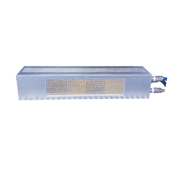A high-performance UVLED surface light source curing system designed for UV flexo printing and UV ink curing. The system mainly includes a controller, 8 UVLED irradiation heads and a water cooler. The UVLED irradiation head is integrated with imported high-intensity ultraviolet LEDs. The UV spectrum wavelength is 395nm, air-cooled heat dissipation, and the effective curing area is 280X60mm. It supports external signal input and triggering, and can be equipped with semi-automatic or fully automatic production lines.