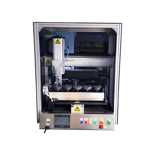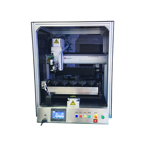 这是一款高性能自动点胶固化一体机,内置UVLED固化光源,即开即关,不含汞, 也不会产生臭氧,具有安全环保、发热量小、超级省电、寿命长等特点。光源尺寸、治具可根据客户的产品量身定制。