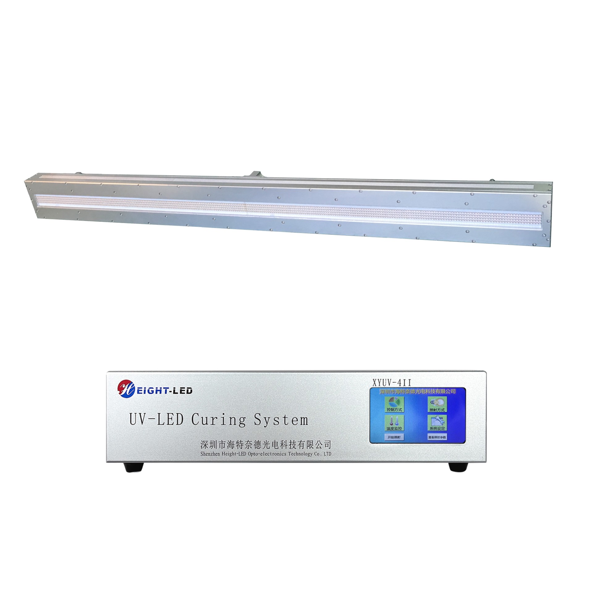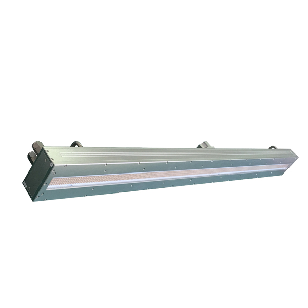 此UVLED照射头采用进口高强度紫外LED集成,UV光谱波长为395nm,采用强制水冷散热,有效固化面积为1120X20mm,支持外部信号输入和触发。